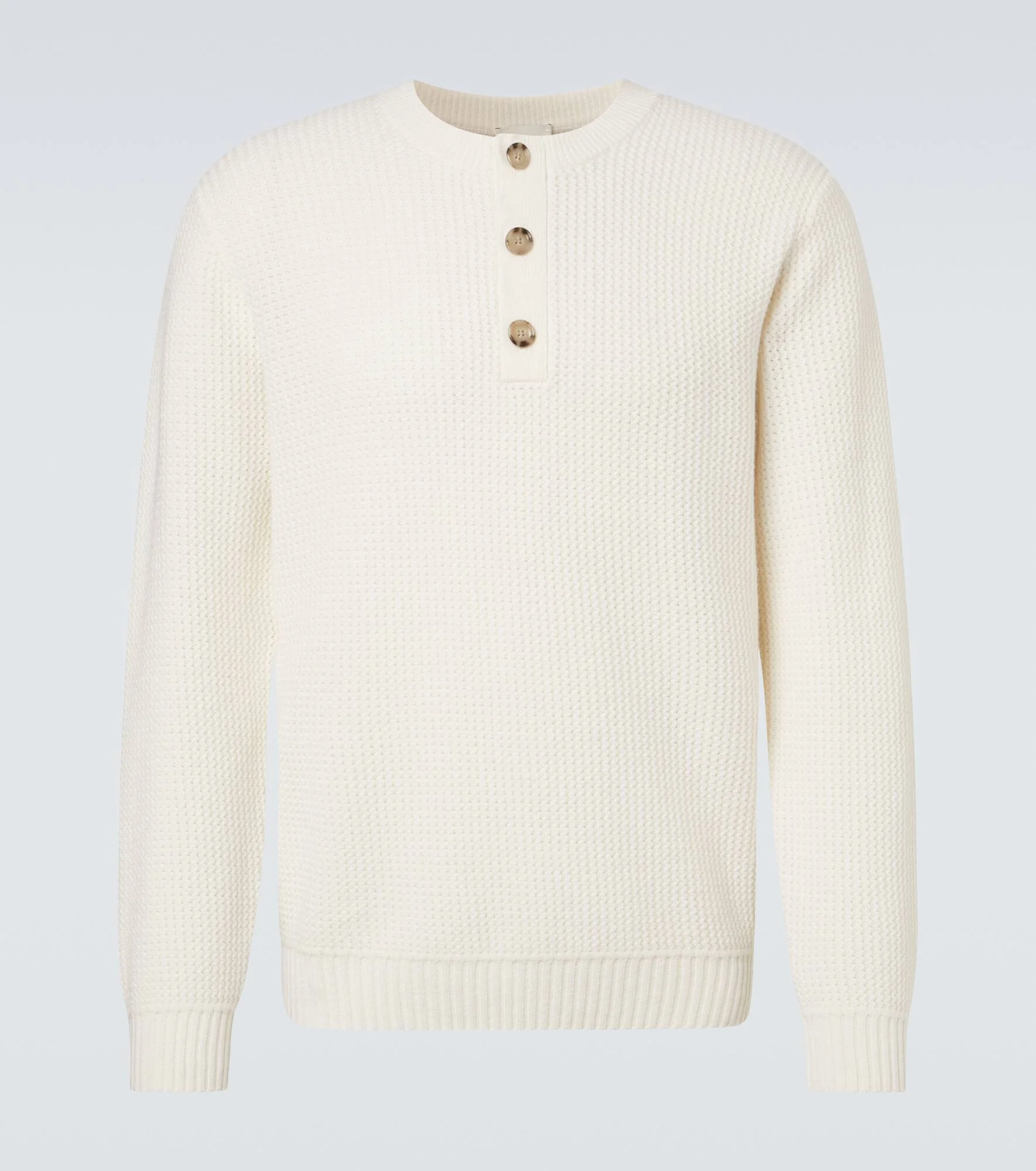 Allude creates refined cashmere pieces that unite classic style with modern design, echoing the meaning behind the brand’s name. This waffle-knit wool and cashmere sweater is detailed with a three-button placket and ribbed-knit trims. Product Details - Material: 70% wool, 30% cashmere - Care instructions: hand wash - Made in China - Designer color name: 40 - Item color: white - Closure: partially buttoned front - Cuff: ribbed - Hem: ribbed - Item number: P01135491 Size & Fit - True to size - Straight fit - Slightly stretchy fabric - Falls to the hip - The model in the picture is 185cm-6'1" and wearing a size L