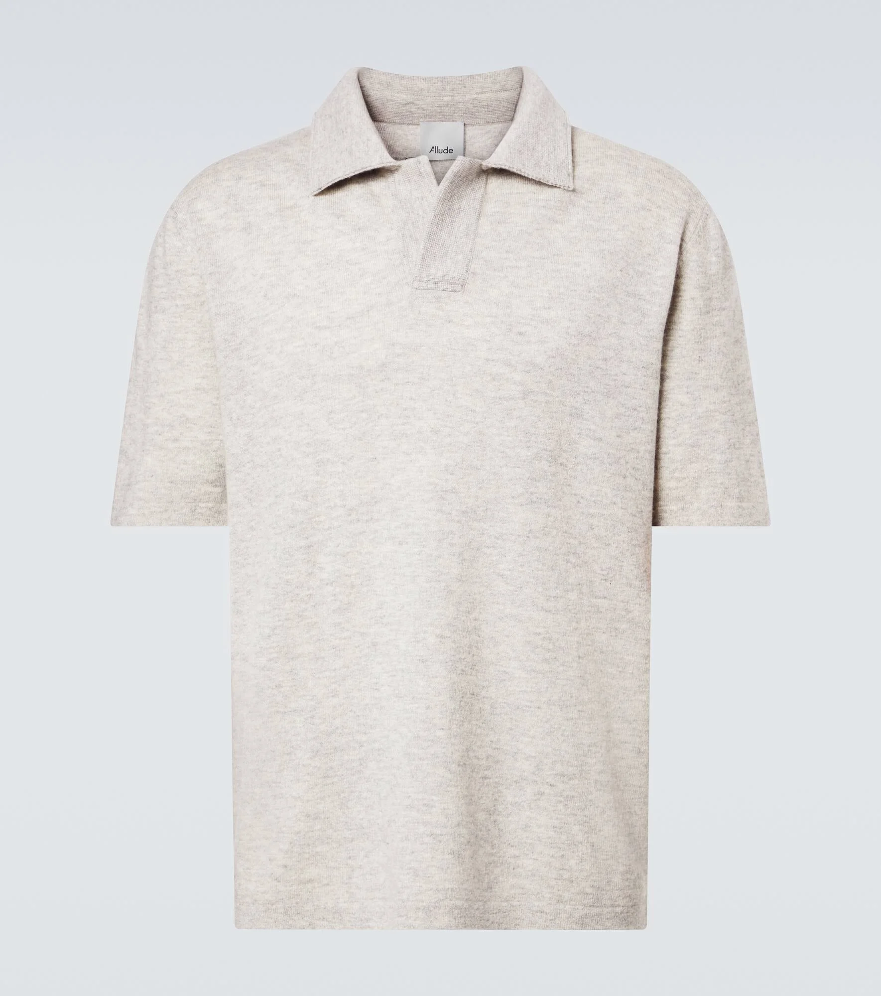 Allude creates refined cashmere pieces that unite classic style with modern design, echoing the meaning behind the brand’s name. Knitted from a wool and cashmere blend, this polo sweater features a buttonless collar and a short-sleeved design. Product Details - Material: 70% wool, 30% cashmere - Care instructions: hand wash - Made in China - Color: grey - Designer color name: 81 - Item color: gray - Collar: polo collar - Cuff: ribbed - Item number: P01135729 Size & Fit - True to size - Straight fit - Stretchy fabric - Falls below the hip - The model in the picture is 185cm-6'1" and wearing a size L