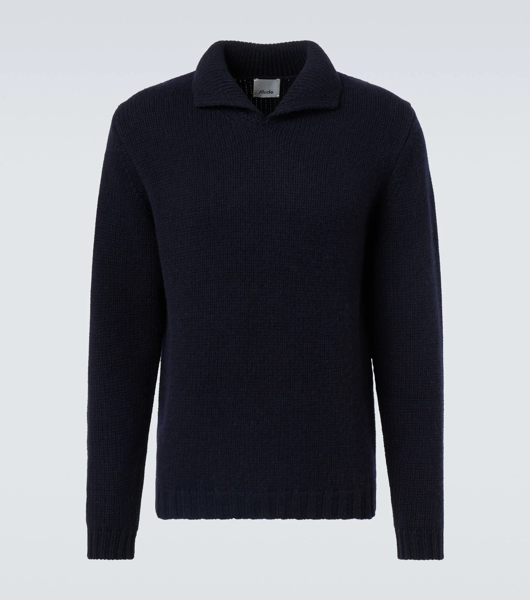When it comes to knitwear, Allude is an industry expert. Complete with a classic polo collar, this sweater is made from a soft, navy-hued blend of wool and cashmere. Product Details - Material: 70% wool, 30% cashmere - Care instructions: hand wash - Made in China - Designer color name: 14 - Item color: blue - Item number: P01068753 Size & Fit - True to size - Straight fit - Slightly stretchy fabric - Falls to the hip - The model in the picture is 185cm-6'1" and wearing a size L