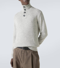 When it comes to knitwear, Allude is an industry expert. Complete with a turtleneck for maximum warmth, this sweater is made from a soft, grey-hued blend of wool and cashmere. Product Details - Material: 70% wool, 30% cashmere - Care instructions: hand wash - Made in China - Designer color name: 81 - Item color: blue - Closure: partially buttoned front - Collar: mockneck - Item number: P01068747 Size & Fit - True to size - Straight fit - Stretchy fabric - Falls to the hip - The model in the picture is 185cm-6'1" and wearing a size L