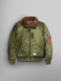 The B-15 is a classic style that’s perfect for colder months. The faux mouton collar adds both flair and warmth, while all the standard bomber specs ensure premium quality. DETAILS - A flight jacket with faux mouton collar and oxygen tab details FEATURES - Faux mouton collar - MA-1 utility sleeve pocket with Alpha red ribbon - Nylon oxygen tab - Full zip closure - Welt side pockets - Nylon twill quilted lining with fill - 2x2 knit rib at cuffs and hem
