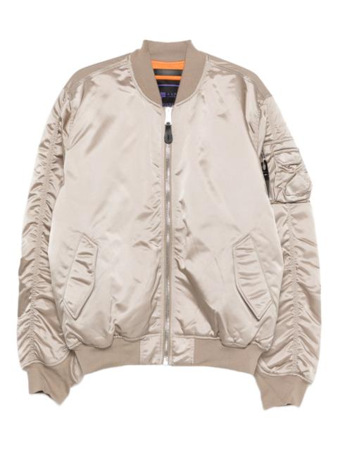 zip-up bomber jacket Highlights - Grey - Front zip fastening - Two side flap pockets - Sleeve zip pocket - Ribbed cuffs and hem Imported Composition Lining: Polyester 100%, Nylon 100% Outer: Nylon 100% Washing instructions Read Manufacturer Guidelines