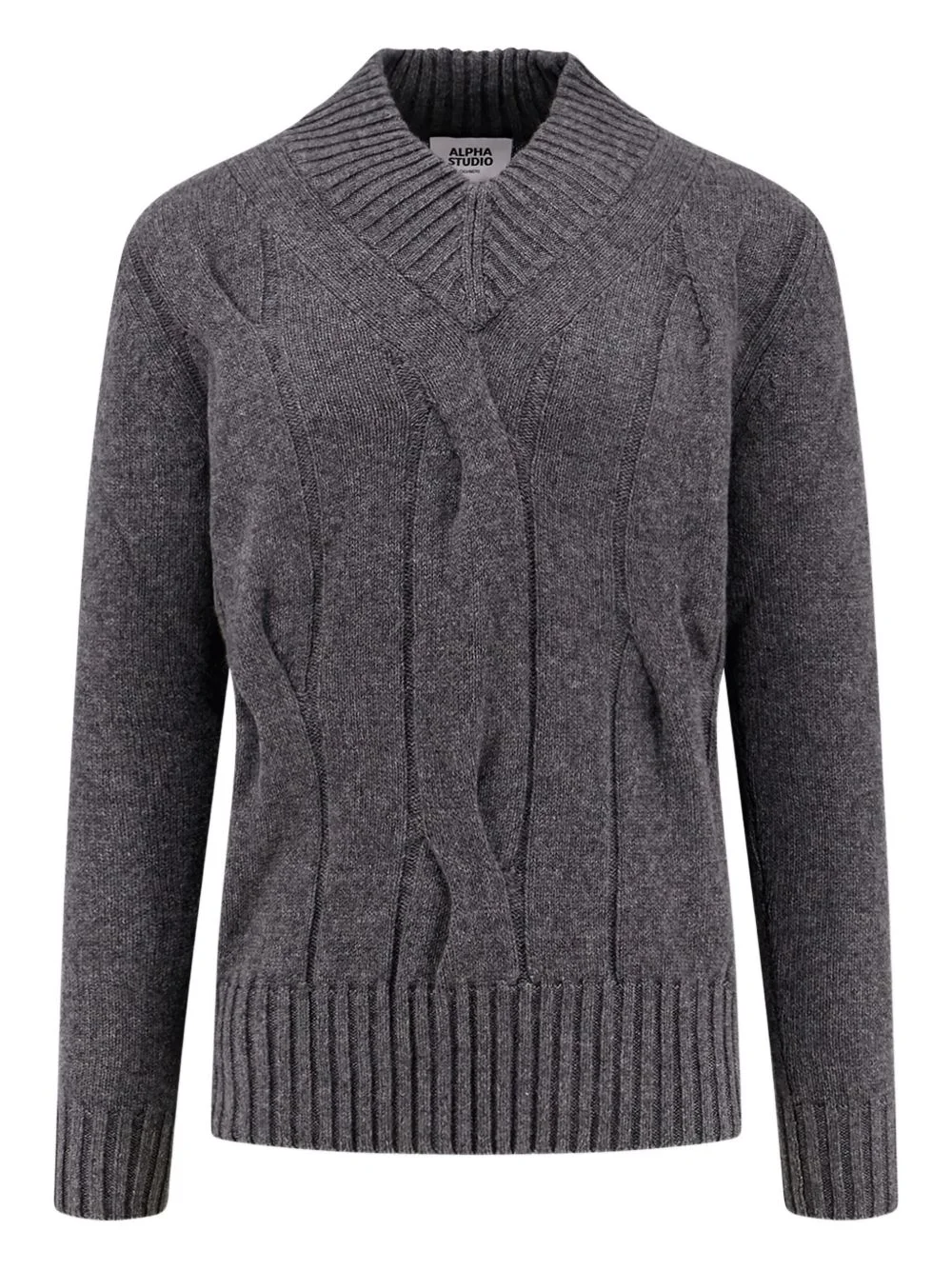 cable-knit sweater Highlights - Dark grey - Cable knit - Ribbed detailing - V-neck - Long sleeves - Straight hem Imported Composition Cashmere 100% Washing instructions Read Manufacturer Guidelines
