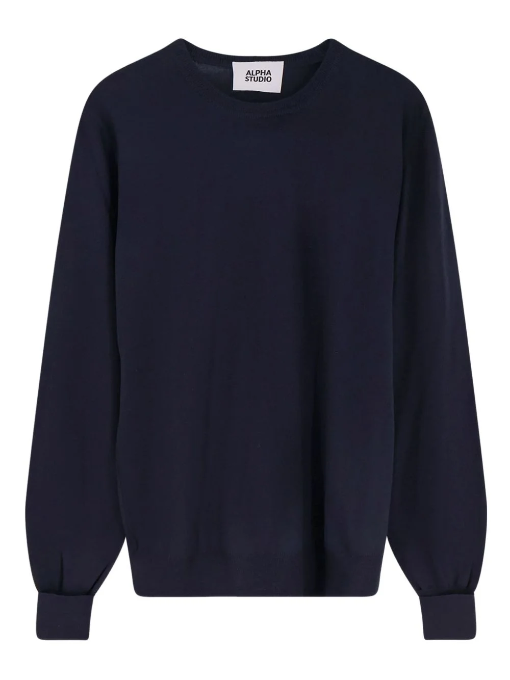 crew-neck sweater Highlights - Night blue - Round neck - Long sleeves - Ribbed cuffs - Ribbed hem Imported Composition Fabric 100% Washing instructions Read Manufacturer Guidelines