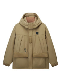 hooded flap-pocket jacket Highlights - Beige - Hooded neckline - Flap pockets - Patch pocket - Branded patch - Drawstring hem Imported Composition Cotton 52%, Nylon 48% Washing instructions Read Manufacturer Guidelines