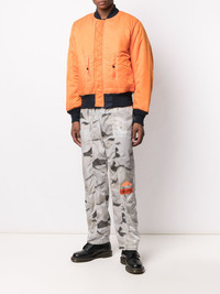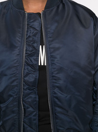 reversible bomber jacket dark blue/orange/black ribbed band collar front zip fastening long sleeves elasticated cuffs sleeve zip pocket two side flap pockets ribbed cuffs ribbed hem Imported Composition Outer: Nylon 100% Lining: Nylon 100%, Polyester 100% SIZE & FIT Model measurements Height 5 ft 11 in(1.8 m) Bust/Chest 33.07 in(84 cm) Hips 37.4 in(95 cm) Waist 25.19 in(64 cm) Washing instructions Dry Clean Only