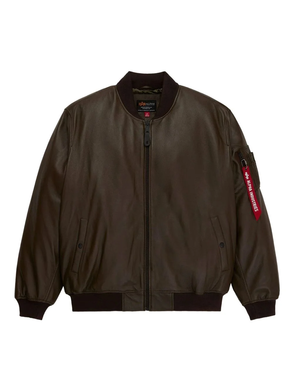 MA-1 leather jacket Highlights - Brown - Zip fastening - Ribbed hem and cuffs - Sleeve pocket - Chest pockets Imported Composition Leather 100% Washing instructions Specialist Cleaning