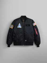 The Gen II iteration of our NASA bomber features new space-themed patches to celebrate all things NASA and outer space. FEATURES - NASA patches on chest and wearers right sleeve - American flag patch on wearers left sleeve - ma-1 utility pocket with alpha red ribbon on sleeve - two exterior flap pockets - one interior welt pocket - knit collar, cuff, and hem - fully lined - water resistant - updates from Gen I: new patches