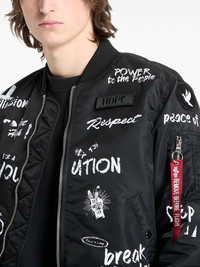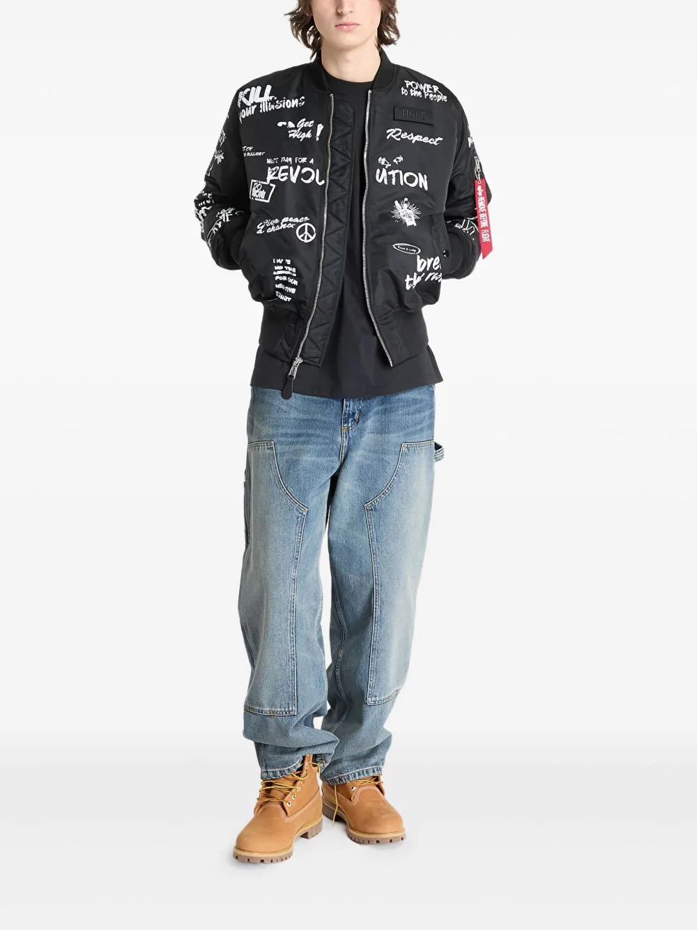 MA-1 Peace bomber jacket Highlights - Black - Fron zip fastening - All-over graphic print - Ribbed cuffs and hem - Side welt pockets Imported Composition Lining: Polyester 100%, Nylon 100% Outer: Nylon 100% Washing instructions Read Manufacturer Guidelines