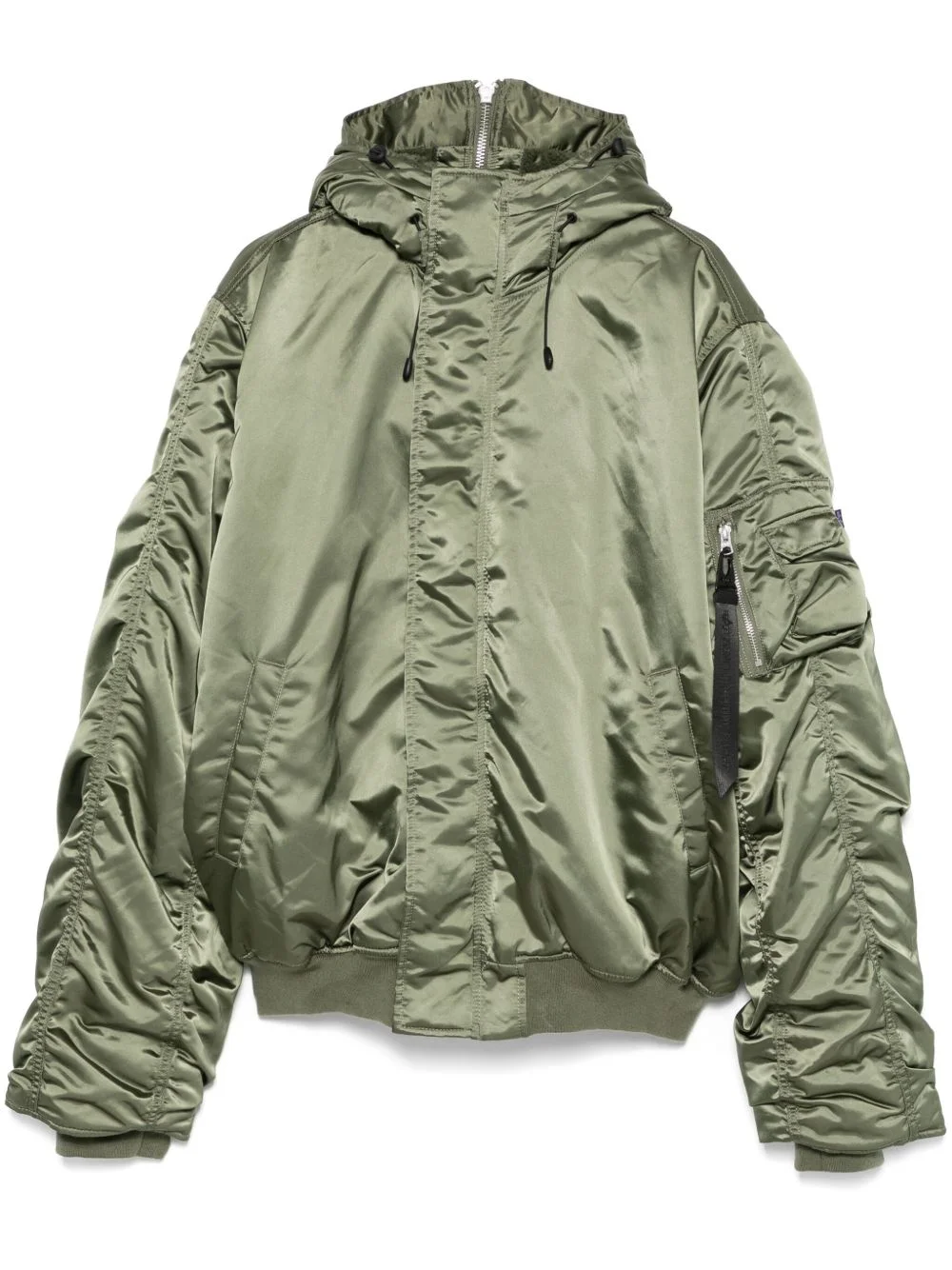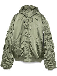 N-2B UV jacket Highlights - Olive green - High-shine finish - Signature primaloft® padding - Water-resistant - Front press-stud and zip fastening - Drawstring zipped hood - Funnel neck - Drop shoulder - Long sleeves - Mini logo tag - Ruched detailing - Sleeve zip pocket - Sleeve flap pocket - Two side welt pockets - Quilted lining - Internal shoulder straps - Ribbed cuffs and hem Imported Composition Lining: Nylon 100%, Polyester 100% Outer: Nylon 100% Washing instructions Dry Clean Only