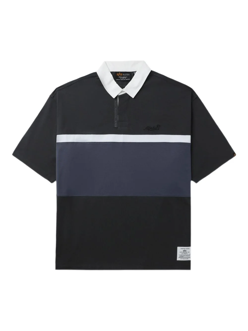 striped polo shirt Highlights - Black - Three horizontal-stripes - Short sleeves - Polo collar - Button placket - Embroidered logo Imported Composition Cotton 100% Washing instructions Read Manufacturer Guidelines