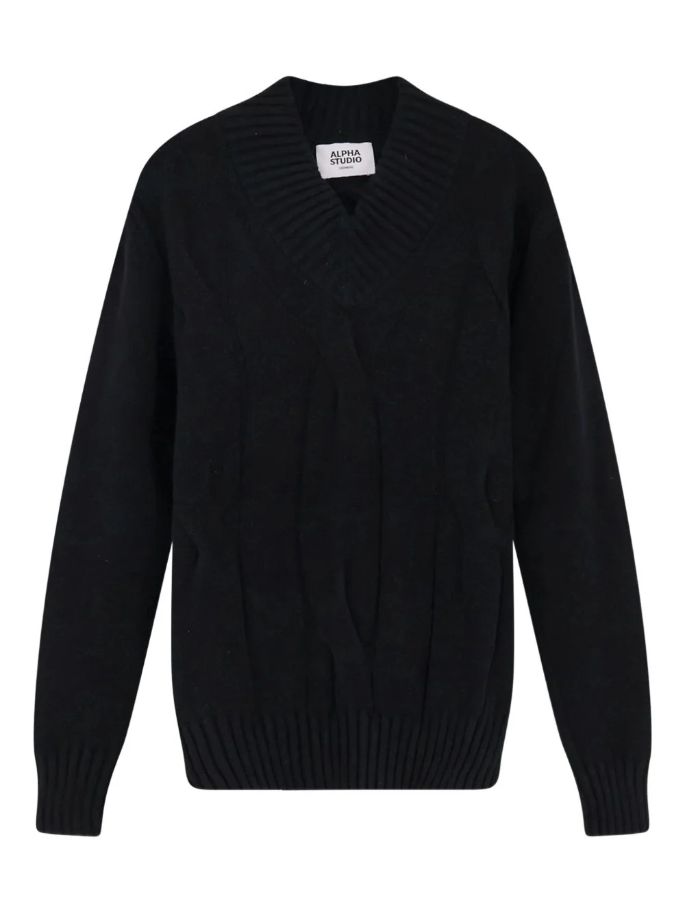 V-neck sweater Highlights - Black - Cable knit - V-neck - Long sleeves - Ribbed hem - Ribbed cuffs Imported Composition Cashmere 100% Washing instructions Read Manufacturer Guidelines