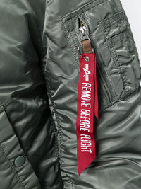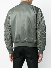 zipped up bomber jacket Vintage green zipped up bomber jacket from Alpha Industries featuring a front zip fastening, a padded interior, elasticated cuffs, side slit pockets and contrasting interior lining. Imported Composition Outer: Nylon 100% Lining: Nylon 100%, Polyester 100% SIZE & FIT Model measurements Height 6 ft 1 in(1.86 m) Bust/Chest 37.4 in(95 cm) Hips 37 in(94 cm) Waist 30.7 in(78 cm) Washing instructions Dry Clean Only
