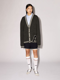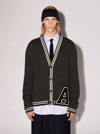 The knit cardigan made from 100% virgin wool features a ribbed v-neck, a distressed finish, a relaxed fit, long sleeves and front button closure. Product ID: BMHB003S24KNI0010710 SIZING Model Valentyn wears size M Height: 6’ 2” (189 cm) Bust: 35” (89 cm) Waist: 28” (71 cm) Model Nova wears size S Height: 5’ 9” (176 cm) Bust: 32” (80 cm) Waist: 23" (60 cm)