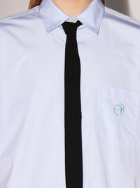 The striped shirt made from 100% cotton features a button closure, the 'AMBLEM' logo patch at the front and is detailed with open sleeves. Product ID: BMGE002S24FAB0024400 SIZING Model Valentyn wears size M Height: 6’ 2” (189 cm) Bust: 35” (89 cm) Waist: 28” (71 cm)