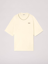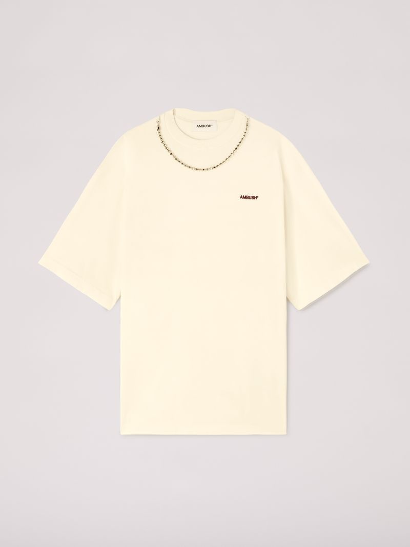 This t-shirt features a detachable ball-chain accessory across the neck and AMBUSH® logo embroidery on the chest. Product ID: BMAA001F24JER0013110 SIZING Model Taketo wears size M Height: 6’ 1.5” (187 cm) Bust: 30” (78 cm) Waist: 26” (67 cm)