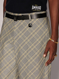 Made from 100% cotton, these trousers feature an all-over check motif and 'AMBLEM' logo at the side. Product ID: BMCO002S24FAB0011900 SIZING Model Kizito wears size 48 Height: 6’ 2” (188 cm) Waist: 25” (66 cm) Hips: 35” (89 cm)