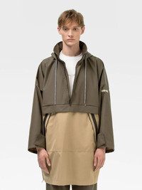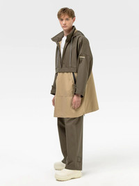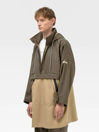 Long hooded anorak coat with contrasted panel detailing. Product ID: BMEO001F21FAB0015656 SIZING Model Camillo wears size M Height: 6'1.5" (187 cm) Bust: 36" (93 cm) Waist: 28" (72 cm) Hips: 36" (93 cm) MATERIAL FABRIC: 59% POLYESTER 28% COTTON 13% POLYURETHANE LINING: 100% COTTON