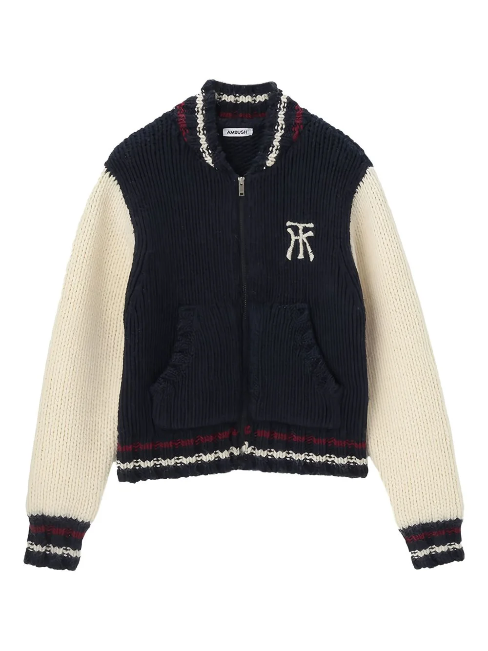 colour-block jacket Highlights - Navy blue - Colour block design - Front zip fastening - Striped hem - Front pouch pockets Imported Composition Fabric 100% Washing instructions Read Manufacturer Guidelines