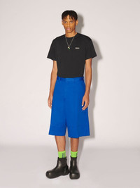 Made from 100% cotton, these oversized knee-length shorts feature belt loop detailing, as well as a zip & button closure. Product ID: BMCT001S23FAB0014700 SIZING MODEL CLINTON WEARS SIZE M HEIGHT: 6’ 13” (187 CM) BUST: 34” (87 CM) WAIST: 26” (68 CM) HIPS: 36” (92 CM) MATERIAL FABRIC 100% COTTON
