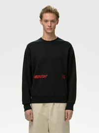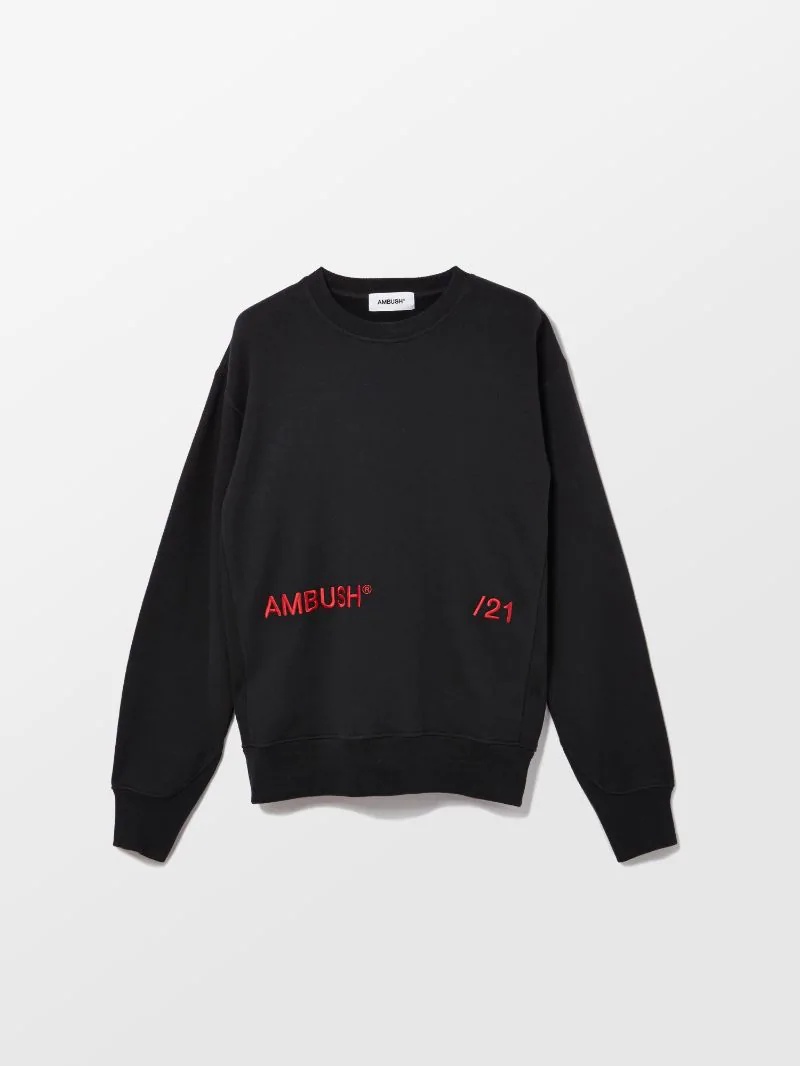 Crewneck sweat shirt with signature AMBUSH® embroidered at front. Product ID: BMBA005S21FLE0011025 SIZING Model Camillo wears size M Height: 74" (187 cm) Chest: 37" (93 cm) Waist: 28.3" (72 cm) Hips: 37" (93 cm) MATERIAL EMBROIDERY 100% POLYESTER FABRIC 100% COTTON RIB DETAILS 100% COTTON