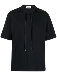 drawstring cotton T-shirt black cotton drawstring neck round neck short sleeves straight hem Made in Italy Composition Cotton 100% SIZE & FIT Model measurements Height 6 ft 1 in(1.86 m) Bust/Chest 36.61 in(93 cm) Hips 36.61 in(93 cm) Waist 29.92 in(76 cm) FittingInformation This piece fits true to size. We recommend you get your regular size Cut for a loose fit Made with a mid-weight fabric