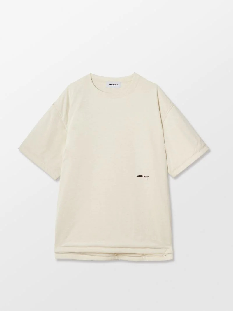 Oversized, short sleeved padded crewneck t-shirt with AMBUSH® logo embroidery. Product ID: BMAA013F21JER0020404 SIZING Model Solha Park wears size M Height: 6'1" (186 cm) Bust: 34.2" (85 cm) Waist: 26.7" (68 cm) MATERIAL FABRIC: 100% COTTON