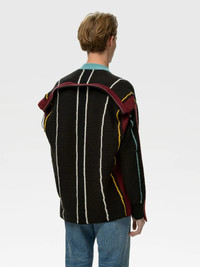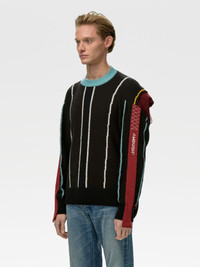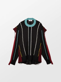 Knitted sweater with unique, bag-like silhouette inspired from container bags used in construction sites. Product ID: BMHE003S21KNI0011000 SIZING Model Camillo wears size M Height: 74" (187 cm) Chest: 37" (93 cm) Waist: 28.3" (72 cm) Hips: 37" (93 cm) MATERIAL DETAILS 58% POLYESTER 42% COTTON FABRIC 85% WOOL 14% POLYAMIDE 1% POLYURETHANE