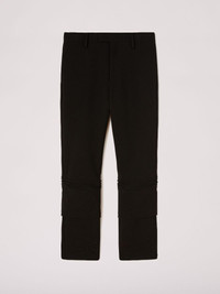 These tailored pants feature wrinkle detailing on the knees, belt loops, side pockets, as well as a front zip fly & top button closure. Product ID: BMCA057F23FAB0011000 SIZING MODEL MARVIN WEARS SIZE 48 HEIGHT: 6’ 13” (187 CM) BUST: 36" (91 CM) WAIST: 29" (73 CM) HIPS: 35" (88 CM) MATERIAL FABRIC 2% ELASTAN 44% VIRGIN WOOL 54% POLYESTER - LINING 100% COTTON