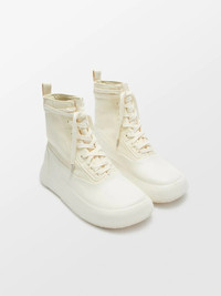 AMBUSH® Original vulcanized hi-top sneakers. Refined design with characteristic silouhette. Product ID: BMIE002S22MAT0010100 MATERIAL UPPER: CALF LEATHER, RUBBER OUTSOLE: RUBBER