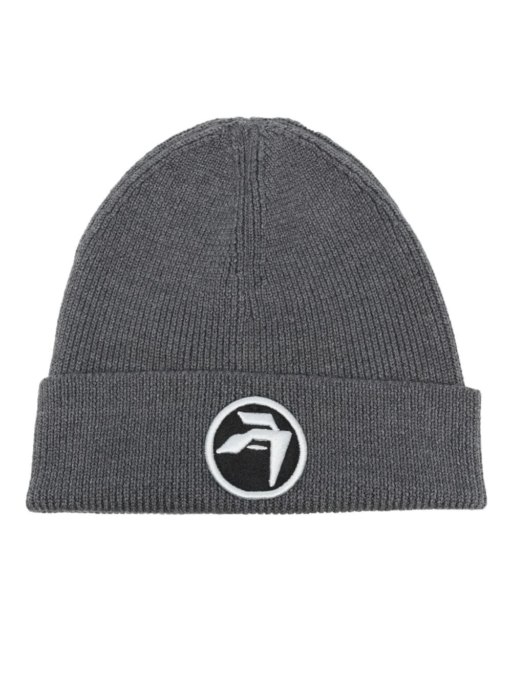 logo-embroidered knitted beanie In grey virgin wool - this AMBUSH beanie is accented with an embroidered logo on the front. Highlights - Grey - Virgin wool - Knitted construction - Embroidered logo to the front - Turn-up hem - Pull-on style Made in Italy Composition Virgin Wool 100% Washing instructions Hand Wash