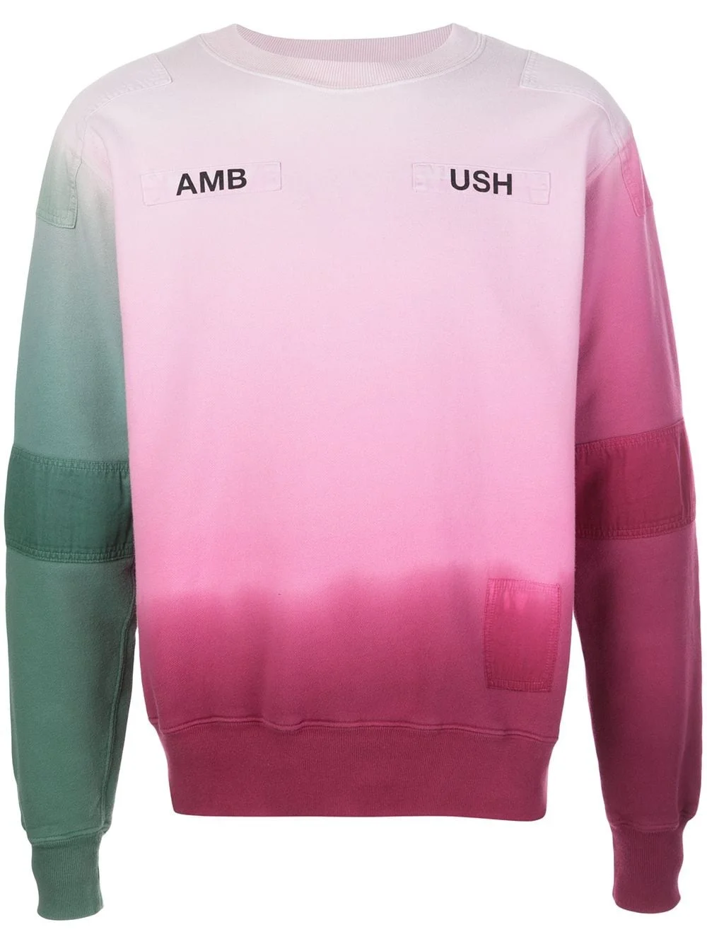 logo-print ombre sweatshirt Go for that effortlessly high-impact look. How? By pulling on this ombre sweatshirt from Ambush of course. Be a little playful with your style. Highlights - Crew neck - Drop shoulder - Logo patch to the front - Ombre print - Patchwork detailing - Long sleeves - Fitted cuff sleeves - When buying this unisex item, keep in mind that it is graded in standard men's sizing Imported Composition Cotton 100% SIZE & FIT Model measurements Height 6 ft 2 in(1.88 m) Bust/Chest 38.18 in(97 cm) Hips 37 in(94 cm) Waist 29.92 in(76 cm) Washing instructions Machine Wash