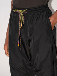 Multicolor cord drawstrings detail the long climbing pants made from black nylon. Completed with elasticized waistband and ankle cuffs, a zip pocket at the back, as well as the AMBUSH® WKSP logo label sewn at the front. Product ID: BMCA041F22FAB0011010 SIZING MODEL ELHADJI WEARS SIZE M HEIGHT: 6’ 2” (190 CM) BUST: 30” (89 CM) WAIST: 23” (73 CM) HIPS: 38” (96 CM) MATERIAL FABRIC 86% POLYESTER 14% POLYURETHANE
