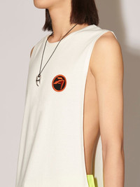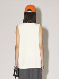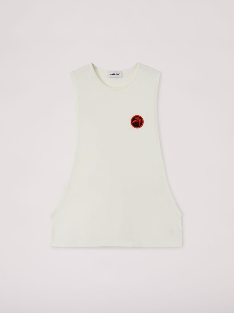 Made from 100% cotton, the white tank top features a seasonal graphic logo patch. Product ID: BMAC003S23JER0010166 SIZING MODEL YANG WEARS SIZE M HEIGHT: 6’ 23” (190 CM) CHEST: 33” (84 CM) WAIST: 27” (70 CM) HIPS: 35” (88 CM) MATERIAL FABRIC 100% COTTON