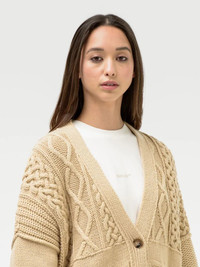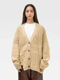 Long sleeved knitted v-neck cardigan designed with patchwork detailing. Product ID: BWHB008F21KNI0011919 SIZING Model Dana wears size S Height: 5'.9" (175 cm) Bust: 32" (81 cm) Waist: 23" (60 cm) Hips: 35" (89 cm) MATERIAL FABRIC: 35% POLYAMIDE 30% WOOL 30% VISCOSE 5% CASHMERE