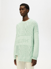 Long sleeves knitted sweater, accented with patchwork AMBUSH® logo embroidery. Product ID: BMHE016S22KNI0015000 SIZING MODEL OUMAR WEARS SIZE M HEIGHT: 6’1” (187 CM) BUST: 34” (88 CM) WAIST: 28” (71 CM) HIPS: 32" (82 CM) MATERIAL FABRIC: COTTON64% NYLON36%