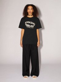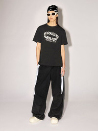 Made from 100% cotton, the short-sleeved, black t-shirt is detailed with a white revolving AMBUSH® logo graphic print at the front. Product ID: BWAA037S23JER0011004 MATERIAL FABRIC 100% COTTON