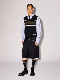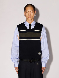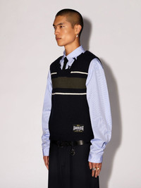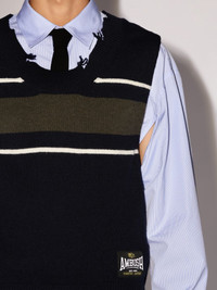This rib knit vest features stripes detailing, an AMBUSH® logo at the side with an unfinished hem. Product ID: BMHZ001S24KNI0014656 SIZING Model Minyung wears size M Height: 6’ 1” (185 cm) Bust: 34” (85 cm) Waist: 26” (68 cm)