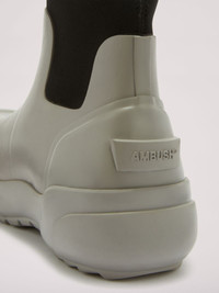 The rubber ankle boots come with AMBUSH® logo detailing at the back and side, a square toe and black socks detail, as well as a chunky rubber sole. Product ID: BMIE003F23MAT0010910 MATERIAL LINING 100% LEATHER - SOLE 100% RUBBER - UPPER SHOE 10% COTTON 20% LEATHER 70% RUBBER