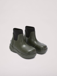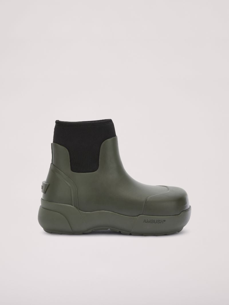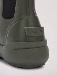 The rubber ankle boots come with AMBUSH® logo detailing at the back and side, a square toe and black socks detail and a chunky rubber sole. Product ID: BMIE003S24MAT0015610