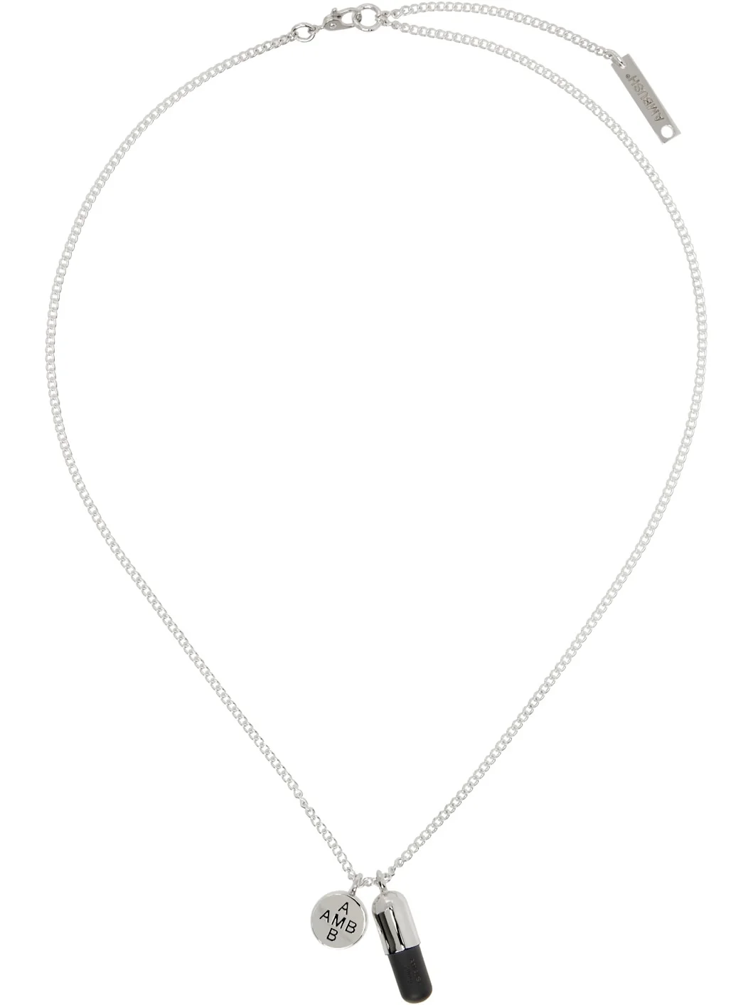 Curb chain necklace in sterling silver. · Logo-engraved pendants · Logo plaque at adjustable lobster-clasp fastening · L20.5" Supplier color: Silver/Black