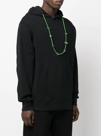 Stoppers relaxed-fit hoodie AMBUSH's AW22 collection includes this relaxed cotton hoodie that is detailed with fluorescent green stopper fasteners around the neck. Imported Composition Cotton 100%, Polyester 100% SIZE & FIT Model measurements Height 6 ft 0 in(1.84 m) Bust/Chest 35.82 in(91 cm) Hips 37 in(94 cm) Waist 28.34 in(72 cm) FittingInformation This piece fits true to size. We recommend you get your regular size Cut for a relaxed fit Made with a mid-weight fabric Washing instructions Hand Wash