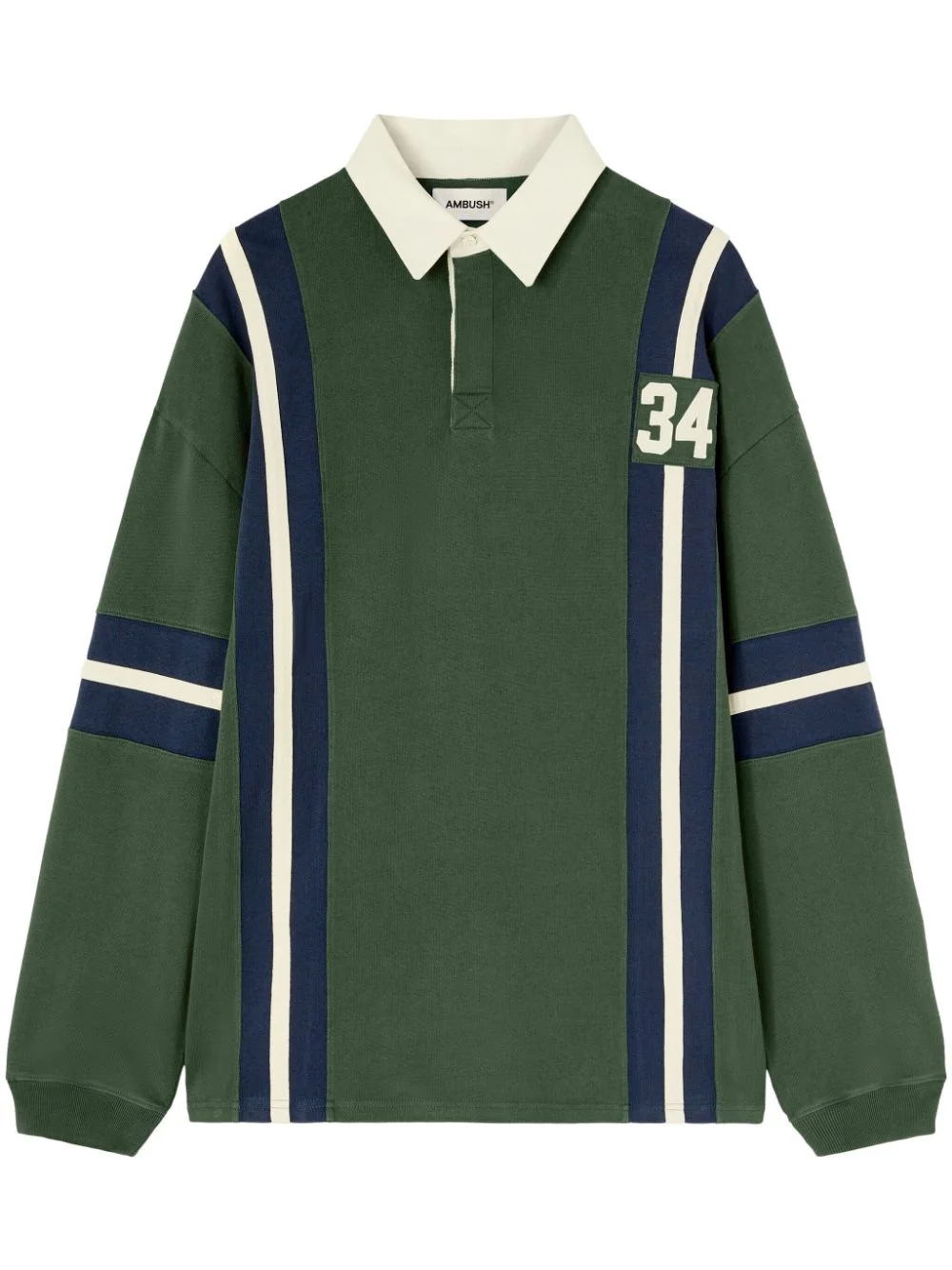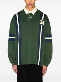 striped rugby polo shirt Highlights - Green/blue/white - Cotton - Stripe detailing - Number patch to the front - Polo collar - Long sleeves - Ribbed cuffs - Straight hem Imported Composition Cotton 100%