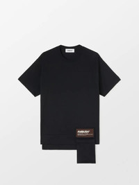 Panelled design t-shirt lined with additional waist pocket. Can be folded into the attached zip-up waist pouch for convenience. Product ID: BMAA004S22JER0011028 SIZING MODEL OUMAR WEARS SIZE M HEIGHT: 6’1” (187 CM) BUST: 34” (88 CM) WAIST: 28” (71 CM) HIPS: 32" (82 CM) MATERIAL FABRIC: COTTON100%