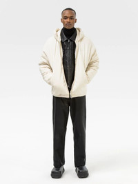 Long sleeve padded hoodie with zip up closure, created with comfortable fabric and a relaxed silhouette. Product ID: BMBB009F21FLE0010404 SIZING Model Malik wears size M Height: 6' (185 cm) Bust: 35" (89 cm) Waist: 27" (68 cm) MATERIAL FABRIC: 100% COTTON