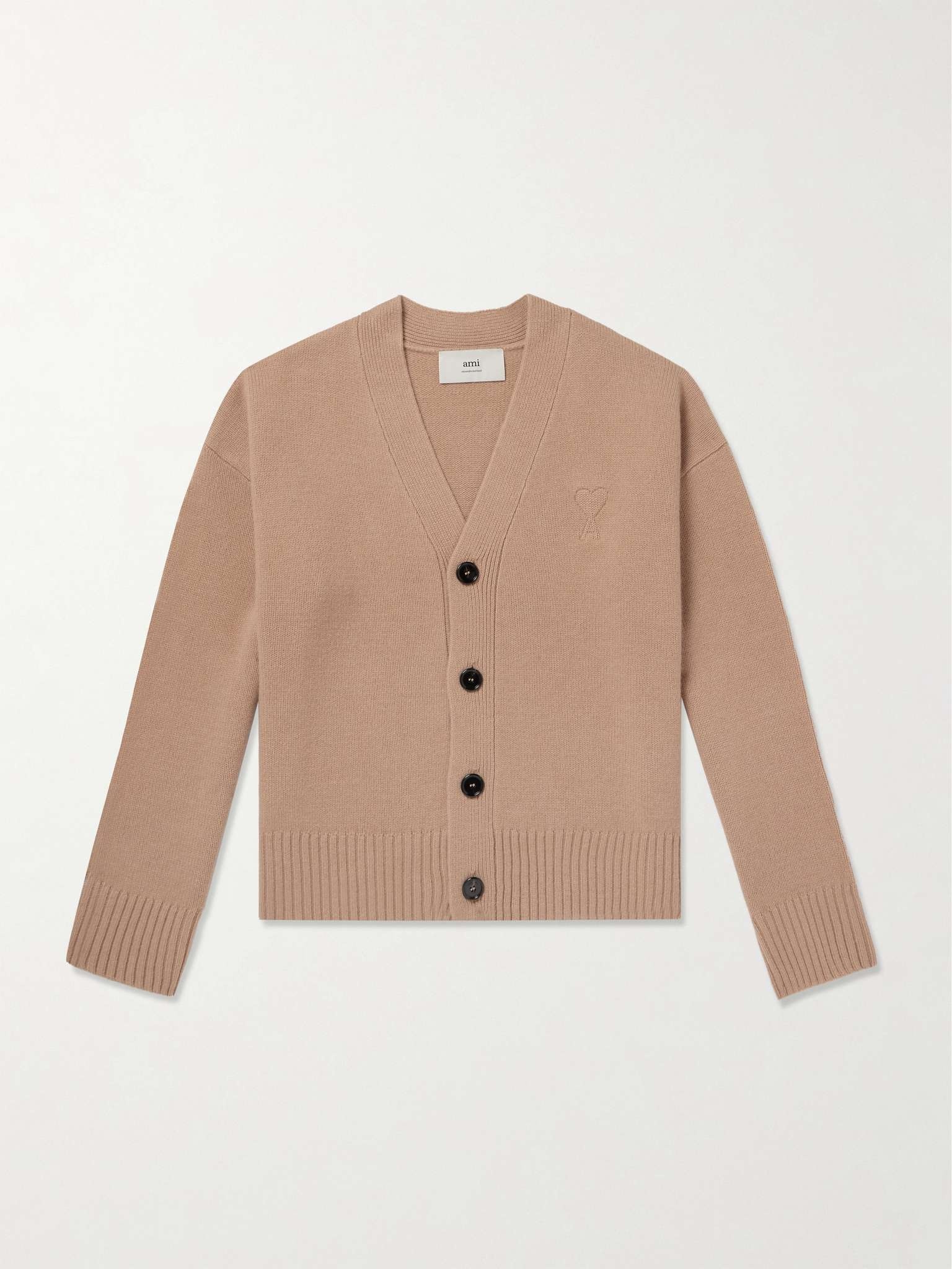 According to founder Alexandre Mattiussi, AMI PARIS makes clothes for life, so good quality and good proportions are the top priorities. Knitted from a blend of merino wool and cashmere, this cardigan is stitched with the 'Ami de Coeur' emblem at the chest, which creates the effect that it's sunken into the fabric. Size & Fit - Fits true to size. Take your normal size - Designed for a loose fit - Dropped shoulder seam - Mid-weight knit - Model is shown wearing a M - Model measures: chest 38"/ 96cm, height 6'3"/ 191cm Details & Care - Beige merino wool and cashmere-blend - Button fastenings - 90% merino wool, 10% cashmere; buttons: 100% horn (Buffalo) - Hand wash