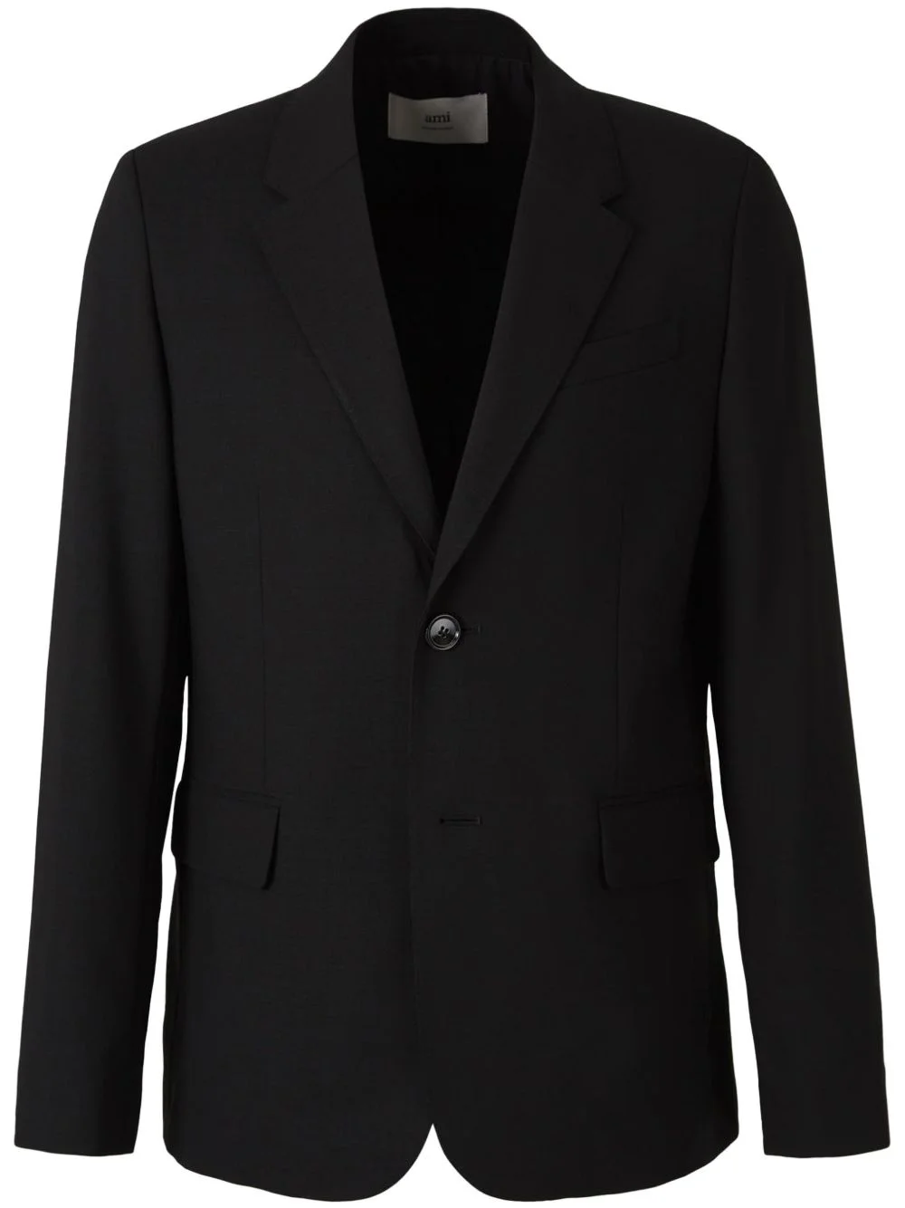 wool blazer Highlights - Black - Front button fastening - Buttoned cuffs - Chest welt pocket - Two side flap pockets Imported Composition Virgin Wool 100%