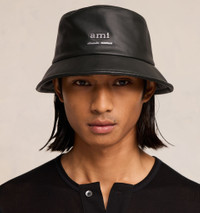 Product Description black lambskin smooth grain silver-tone logo plaque flat crown dropped wide brim Bucket hat in smooth nappa leather. - ami alexandre mattiussi metallic studs - Cotton gabardine lining - Made in Italy (with love) REF UHA242.LH0029364 Size & Fit Fits true to size. Take your normal size. Materials & Care Instructions 100% Lamb Leather Clean with a cloth or brush