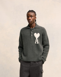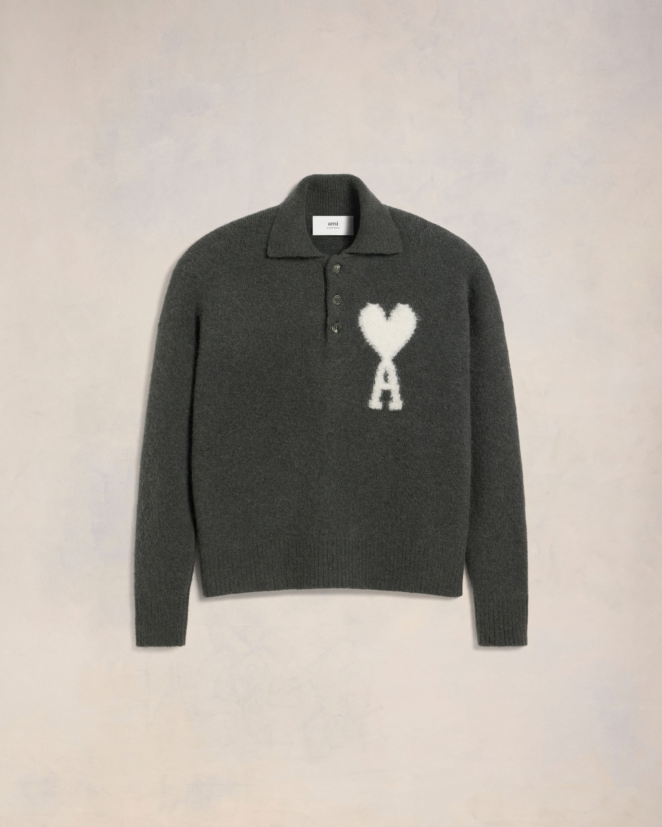 Polo in hairy alpaca knit. Unisex product Interlock stitch Fur stitch intarsia knitted off-white Ami de Coeur on the chest 62 cm center back length (size M) 56 cm center back length (size XS) Horn buttons Made in Portugal (with love) REF : UPL325.KN0032.061 SIZE & FIT This style is unisex. For man, take your normal size. For woman, take one size down than your usual size. Man model is 1m83 / 6'0" and is wearing a size M. Woman model is 1m78 / 5'10" and is wearing a size XS. COMPOSITION & CARE GUIDE 71% Alpaca, 22% Polyamide, 4% Wool, 3% Elastane Hand wash low temperature Chlorine prohibited Do not tumble dry Flat drying in the shade Cool iron Dry clean gentle