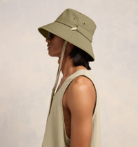 Product Description sage green cotton gabardine weave signature Ami de Coeur monogram motif eyelet detailing flat crown dropped wide brim drawstring fastening Bucket hat in compact cotton satin. - Tonal Ami de Coeur studs - Ami Paris signature eyelets - Made in Italy (with love) REF UHA233.CO0009317 Size & Fit Fits true to size. Take your normal size. Materials & Care Instructions 100% Cotton Clean with a cloth or brush